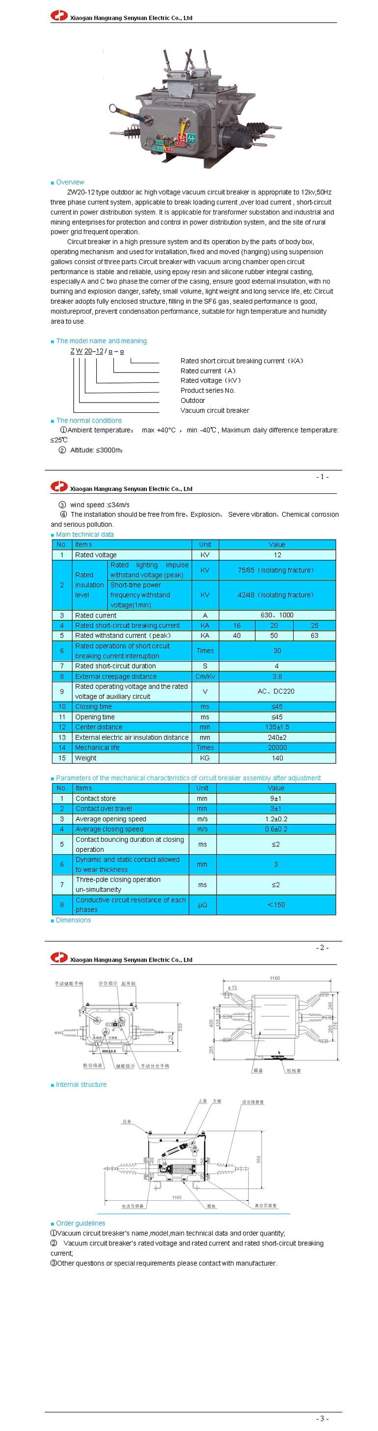 ZW20-12 outdoor high voltage vacuum circuit breaker